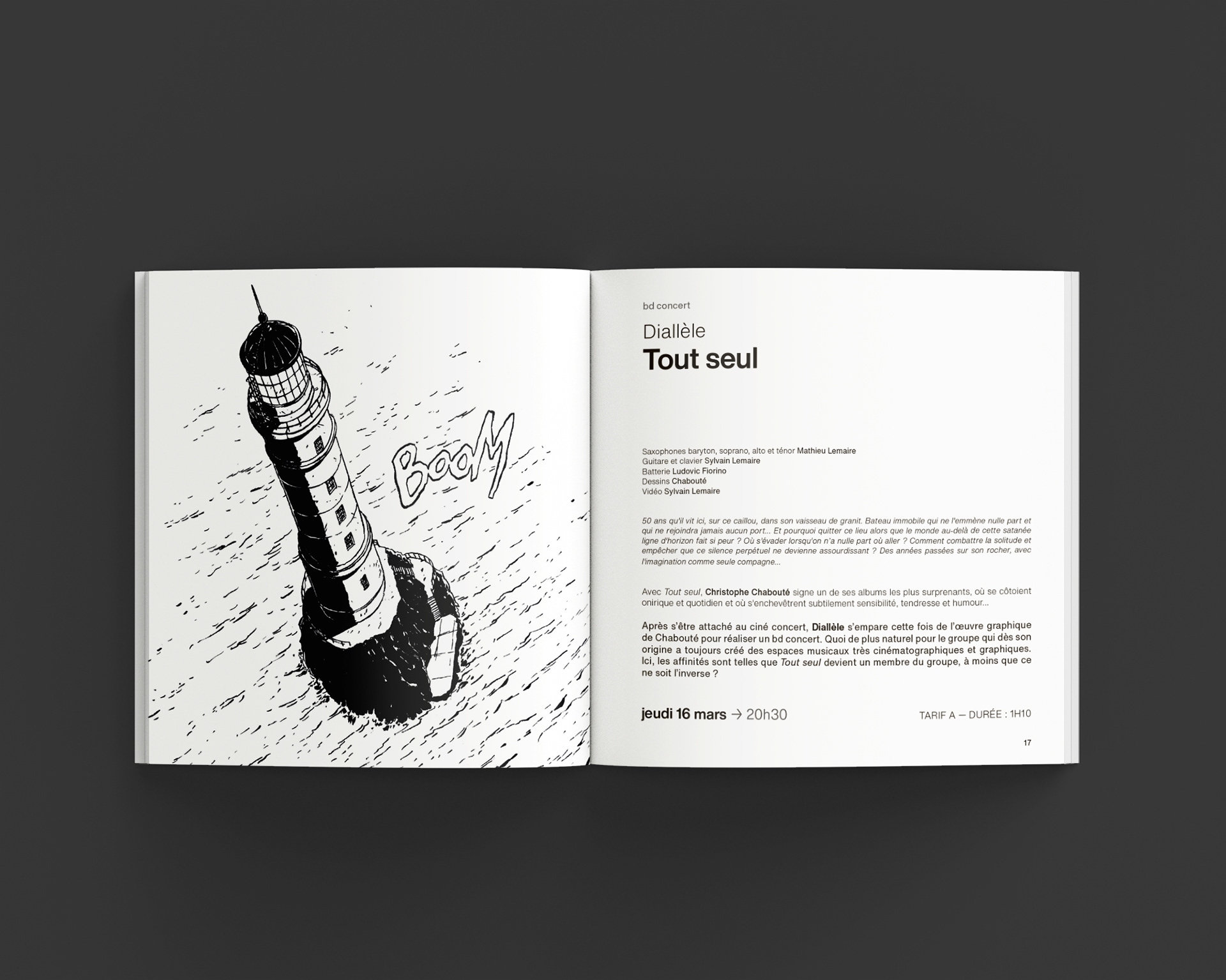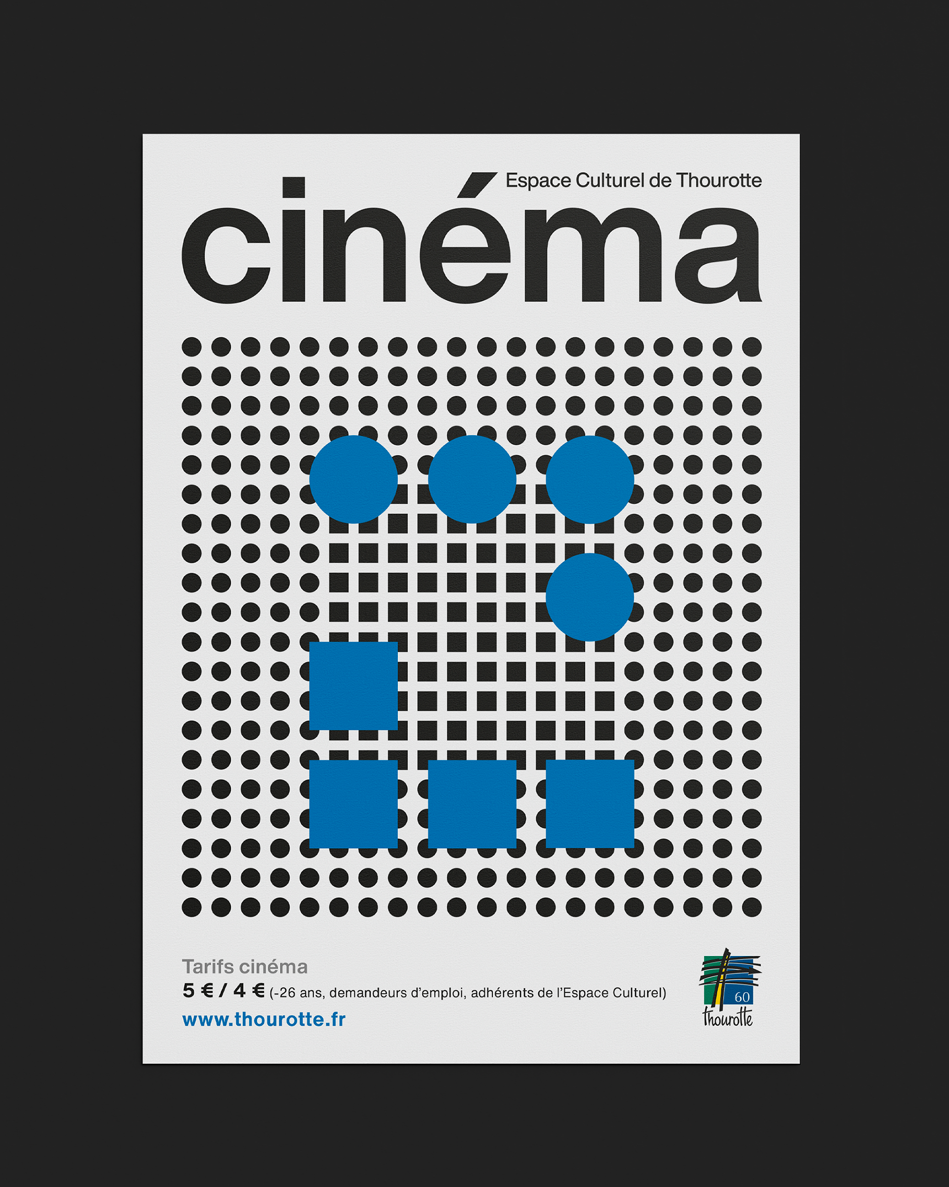 Création du visuel de couverture et mise en page de la plaquette dédiée à la programmation de la saison culturelle 2022/23, création de flyers, sticker et couverture du programme cinéma (2022 - Mairie de Thourotte).